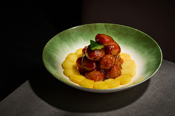 焕新的菜单中,有多个令人期待的新颖佳肴。例如,陈皮酱果香梅羽叉烧,叉烧原叫插烧猪肉,悠久历史可追索到元朝的传统粤菜,有别于西北烧烤,叉烧以酱油酒和糖腌泡辅佐,酒的酚和肉脂的芳,在高温碰撞加持酱香,风味独特怡人。采用伊比利亚梅羽肉,一头猪只有约不到1kg的梅羽肉,在腌制时添加百香果原汁,再特制15年陈皮的叉烧酱,风味更加独特醇厚和丰富。凤梨酥脆咕噜肉,咕噜肉是传统经典粤菜,初期咕噜肉只是用豆粉沾裹油炸不耐脆,经过师傅多年不懈研发改良,如今餐厅的咕噜肉,多次调试的脆浆配方,西班牙黑猪梅肉,从第一颗脆响的口感到最后一颗依然酥脆,甘香多汁肥而不腻,满口留香。梁翔东表示:“我们希望通过这次菜单更新,让每一道菜都讲述一个故事。每一个食材、每一种搭配都是我们对美食文化的一种探索和表达。”他提到,新菜单中的许多菜品灵感源自于南方各地独特的风土人情,同时也吸取了市场美食趋势,以确保宾客在这里能够尝到新颖、具创意的美味。