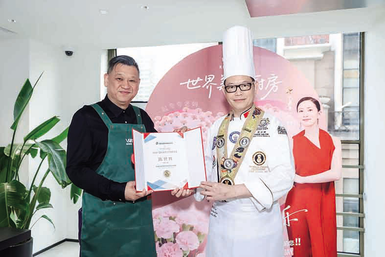 亚洲点心天王陈世辉博士现场演绎“曼烹细煮”健康烹饪哲学,带领12组企业家组成的团队成员一起完成少油粽子和低温牛排教学,传递“厨房即疗愈空间”的理念。